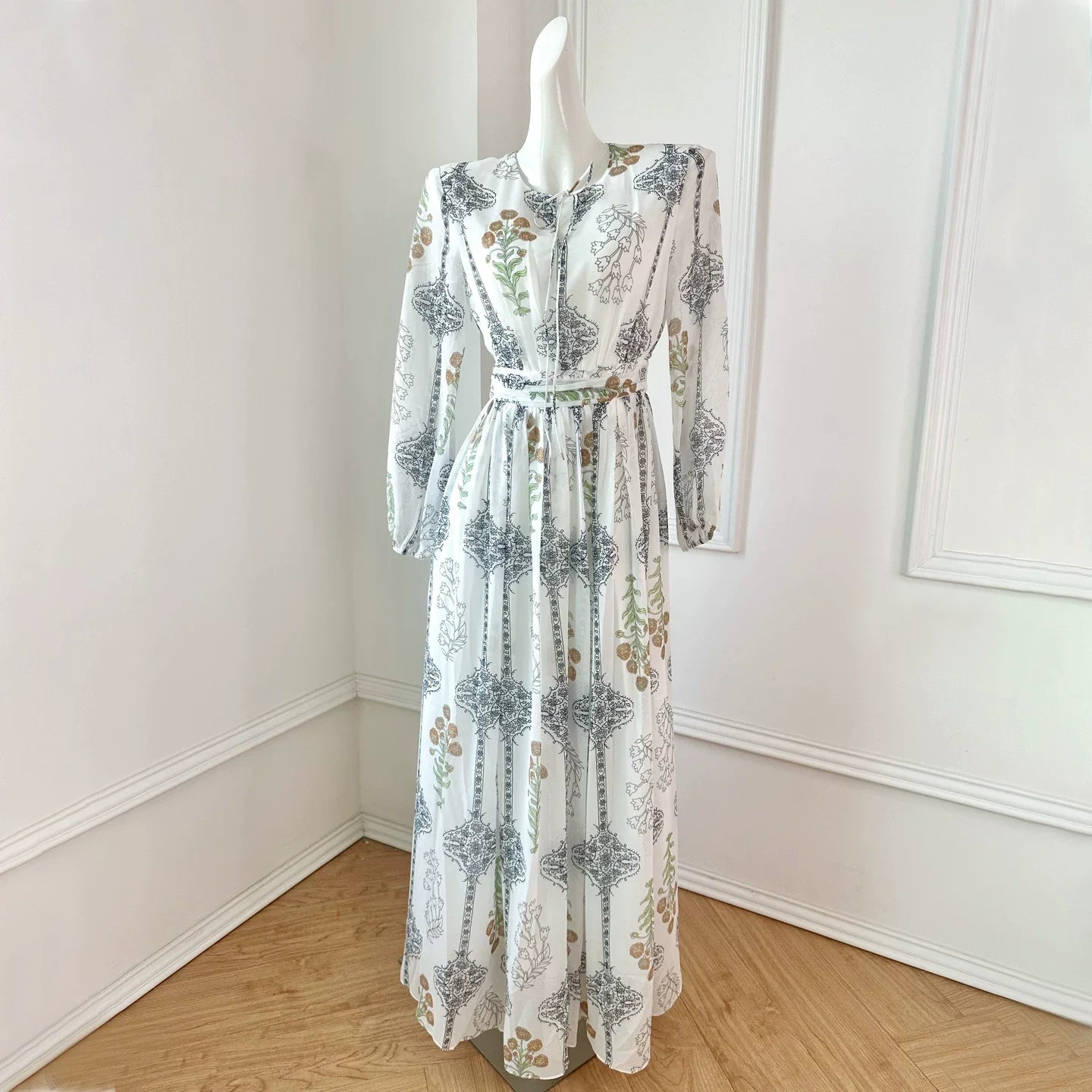 Gaun Panjang Bunga Polyester dengan Detail Tali