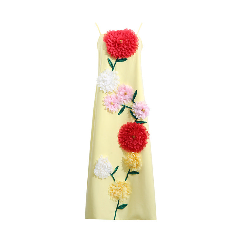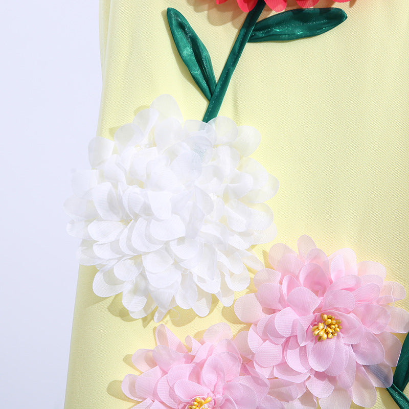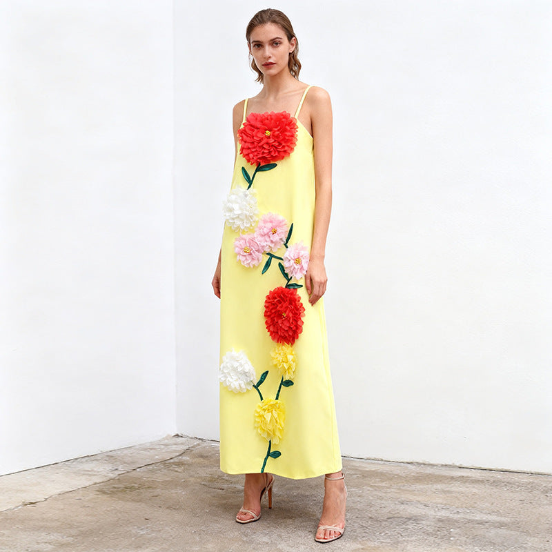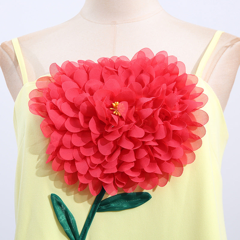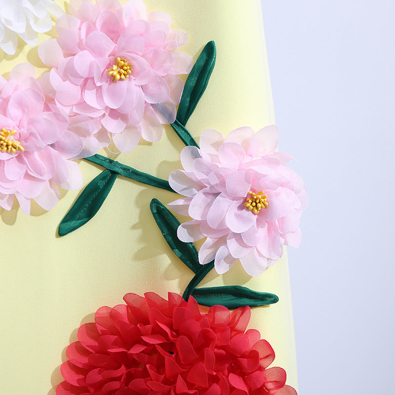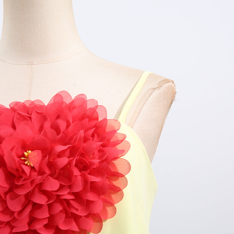 Gaun tali yang elegan ini menampilkan desain patchwork bunga tiga dimensi, sempurna untuk acara-acara mewah. Siluet tanpa lengan dan melangsingkannya menawarkan tampilan yang canggih untuk acara malam atau pertemuan formal.