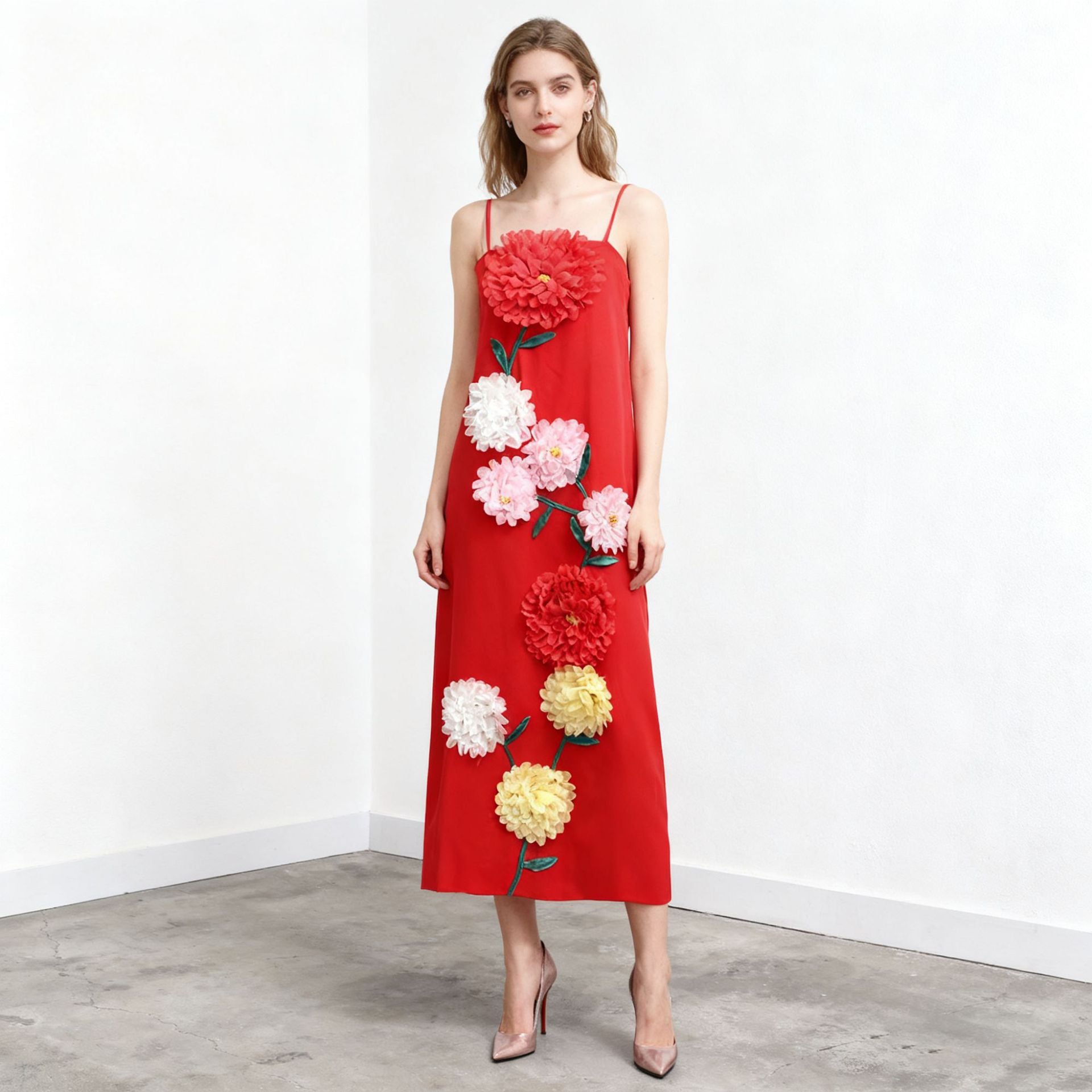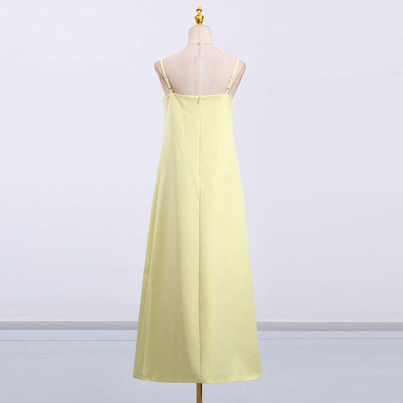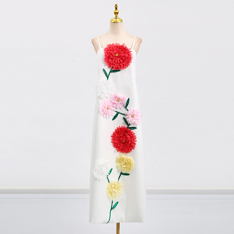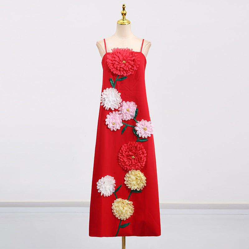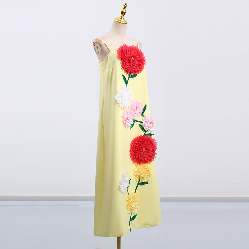 Gaun tali yang elegan ini menampilkan desain patchwork bunga tiga dimensi, sempurna untuk acara-acara mewah. Siluet tanpa lengan dan melangsingkannya menawarkan tampilan yang canggih untuk acara malam atau pertemuan formal.