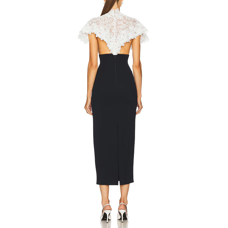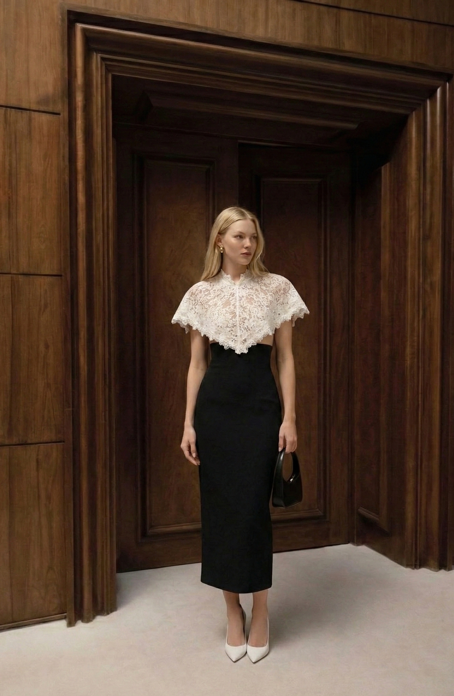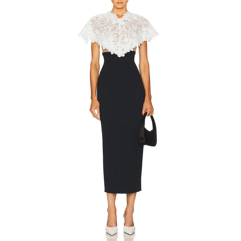Gaun bodycon yang elegan ini menampilkan desain selendang splicing renda yang canggih, sempurna untuk acara mewah atau pertemuan malam. Siluet slim-fit-nya menonjolkan lekuk tubuh Anda, menawarkan tampilan yang halus dan berkelas.